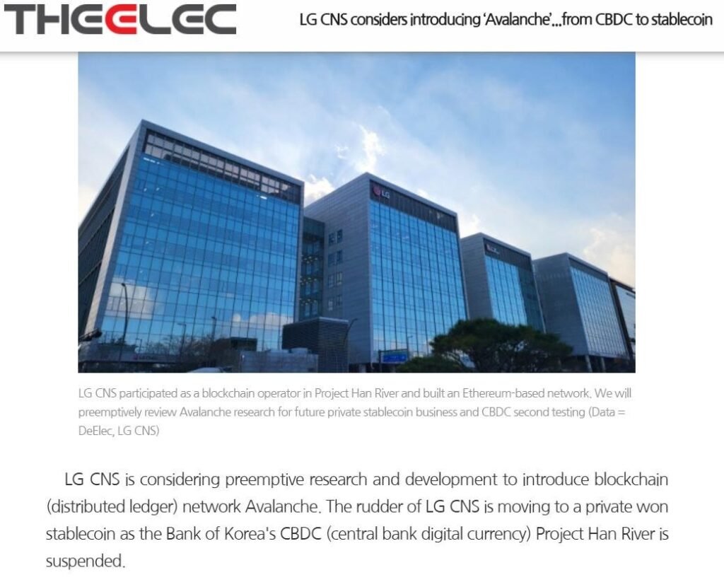 LG, South Korea’s 4th-largest company, is now evaluating Avalanche to power private stablecoin infrastructure and future CBDC systems